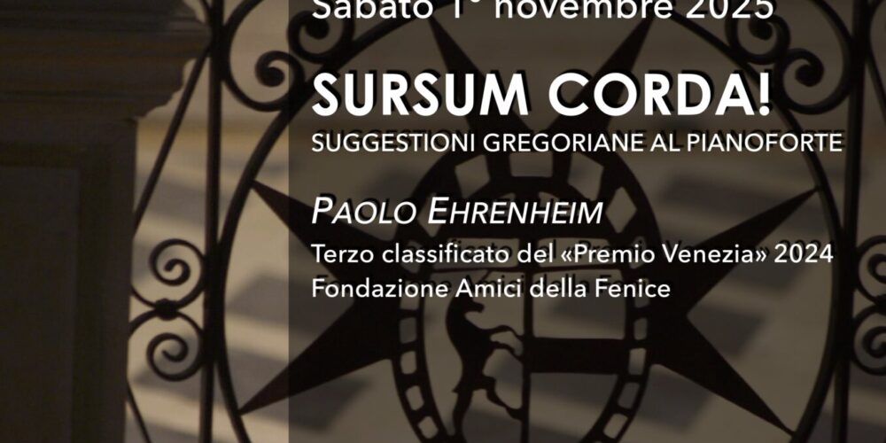 Sabato 1° novembre 2025 alle21 nella Chiesa Gran Priorale di San Giovanni Battista a Venezia si terrà un concerto di pianoforte del Maestro Paolo Ehrenheim.
