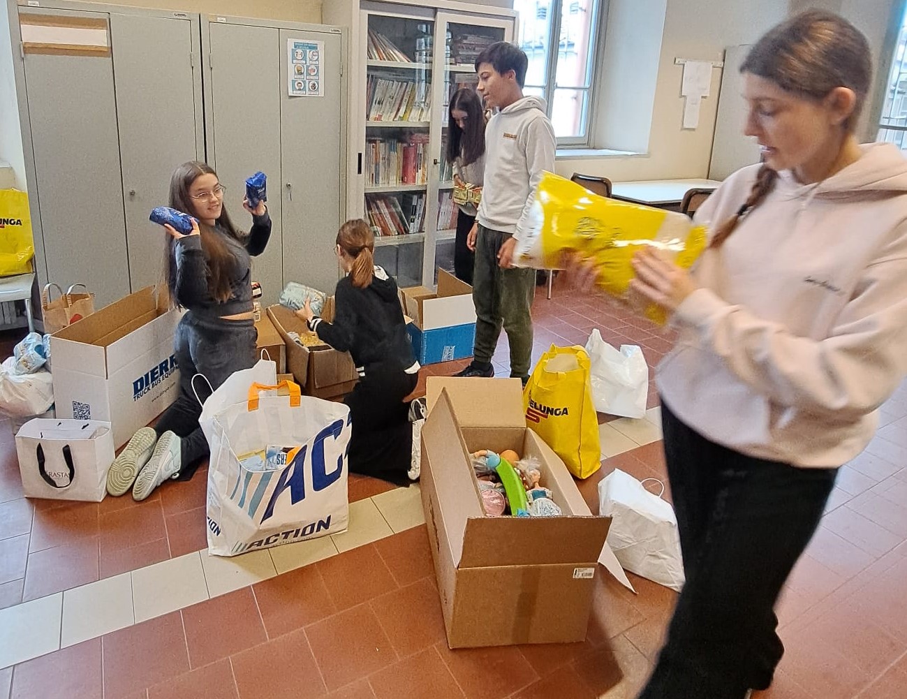 Sono state coinvolte 18 classi dove i ragazzi hanno portato a scuola generi alimentari non deperibili, oltre che vestiti,giocattoli e dolci per i loro coetanei. La risposta è stata superiore alle aspettative e l’iniziativa ha visto anche la concreta partecipazione dei genitori. Quest’anno sono stati raccolti 60 scatoloni, pieni di generi alimentari e regali che sono stati impacchettati dagli stessi alunni. Oltre 400 cuffie di lana e 300 peluche donati dagli studenti sono stati da loro stessi confezionati con carta colorata e nastri da regalo per potere condividere un momento di gioia e speranza con i loro coetanei ucraini.