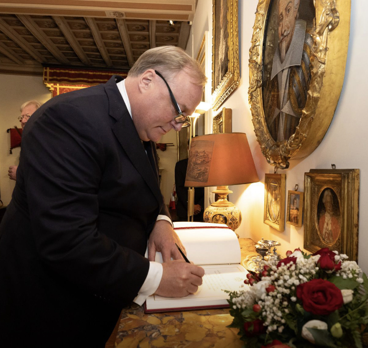 Sua Altezza Reale il Principe Carlo Saverio di Borbone, Duca di Parma e Piacenza, Capo della Real Casa di Borbone Parma, Principe Reale d’Olanda, Balì Gran Croce di Onore e Devozione del S.M. Ordine di Malta, con queste parole ha espresso il Suo indirizzo di saluto a S.A.E. il Principe e Gran Maestro dell’Ordine, Fra’ John T. Dunlap, nel corso della visita del 1 ottobre scorso a Roma. Il Principe Carlo Saverio era accompagnato dalla moglie Principessa Annemarie, oltre che da una rappresentanza olandese, spagnola e parmense. Un incontro che ha confermato lo storico legame fra l’Ordine di Malta e la Casa di Borbone Parma. Erano presenti tutte le Grandi Cariche dell’Ordine: il Gran Commendatore S.E. Fra’ Emmanuel Rousseau, il Gran Cancelliere S.E. Riccardo Paternò di Montecupo, il Grande Ospedaliere S.E. Josef D. Blotz, il Ricevitore del Comun Tesoro S.E. Fra’ Francis Vassallo, il Presidente della Fondazione Italiana Pellegrinaggi S.E. Fra’ Nicola Tegoni, oltre alle LL.EE. gli Ambasciatori Antonio Zanardi Landi e Sergio Rodriguez Lopez-Ros e il Delegato Granpriorale del S.M. Ordine di Malta per l’Emilia Occidentale Paolo Conforti, che ha omaggiato S.A.E. il Gran Maestro di una copia del suo volume “Il patrimonio araldico della Real Casa Borbone Parma, l’Ordine di San Lodovico”. Nell’occasione S.A.R. il Duca di Parma e Piacenza ha consegnato al Gran Maestro la Gran Croce “in brillanti” dell’Ordine di San Lodovico, che storicamente conferiva all’insignito la nobiltà ereditaria degli Stati Parmensi. La Principessa Annemarie, Duchessa di Parma e Piacenza, è stata insignita dal Gran Maestro della Gran Croce dell’Ordine al Merito Melitense, classe speciale.