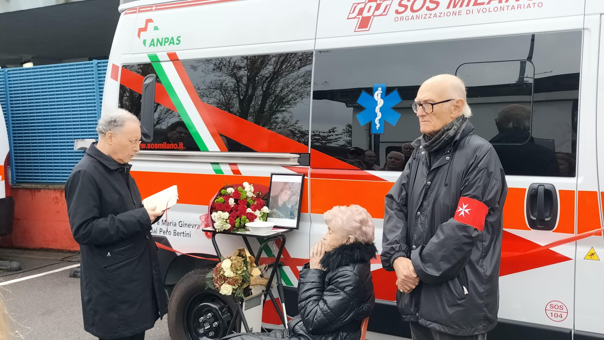 E’ arrivata l’ambulanza voluta dalla compianta Maria Ginevra dal Pero Bertini, Dama Gran Croce di Onore e Devozione dell’Ordine di Malta. Il modernissimo automezzo, allestito per il servizio di Pronto Soccorso 118 come espressamente indicato nel suo testamento da Maria Ginevra, è stato benedetto lunedì 17 di questo mese di novembre da mons. Marco Navoni, Cappellano Capo della Delegazione. Alla breve ma sentita cerimonia presso la sede della società di ambulanze SOS di Milano, era presente la madre di Maria Ginevra, la 101enne Caterina dal Pero de Sarzana, attorno a cui si sono uniti un gruppo di “antichi” confratelli, consorelle e amici di Maria Ginevra.