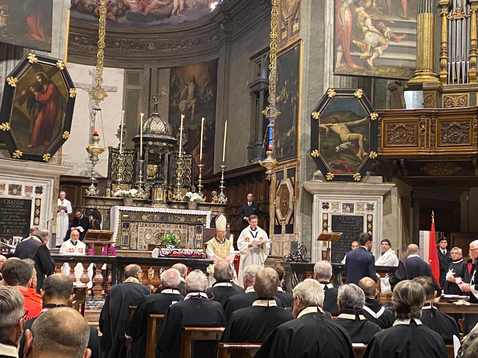 La Santa Messa è stata presieduta da Sua Eminenza Reverendissima il Cardinale Dominique Mamberti, Protodiacono di Santa Romana Chiesa e Prefetto del Supremo Tribunale della Segnatura Apostolica, nonché Balì Gran Croce di Onore e Devozione dell’Ordine di Malta. Hanno concelebrato nove cappellani della Delegazione, guidati dal Cappellano Capo mons. Marco Navoni, Prefetto della Veneranda Biblioteca Ambrosiana.