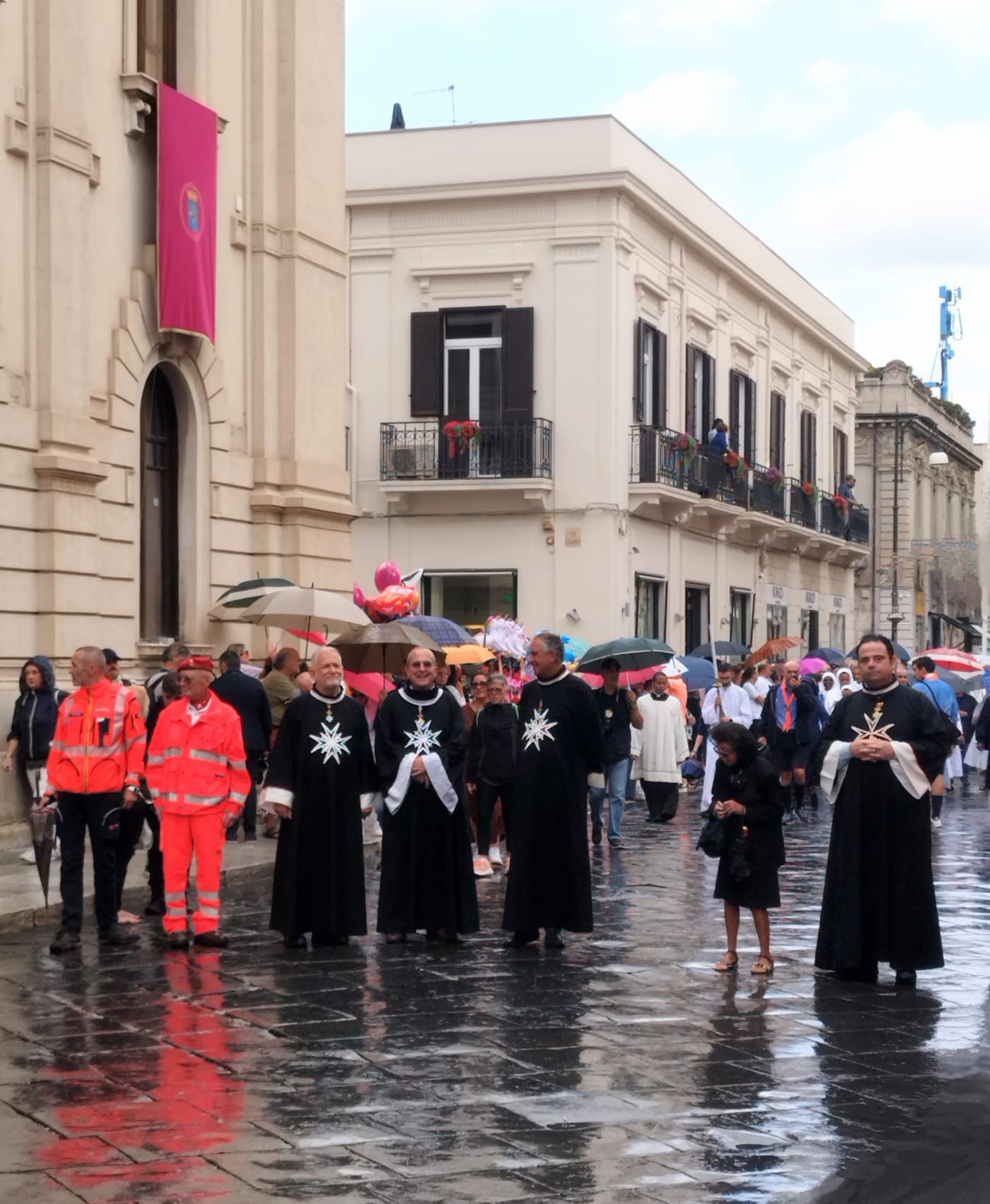 Un episodio significativo, rimasto nella memoria recente, è quello della processione del 2024, segnata da una pioggia insistente. In quell’occasione il Delegato Granpriorale, i Cavalieri e le Dame presero parte al corteo senza ombrello, nel rispetto della tradizione e con disciplina composta. Non fu un gesto eclatante, ma una silenziosa testimonianza di fedeltà, coerente con lo spirito dell’Ordine e con la sua vocazione al servizio discreto⁵. Tale atteggiamento si inserisce nella continuità di una presenza che accompagna la città non solo nei momenti solenni, ma anche nelle prove.
