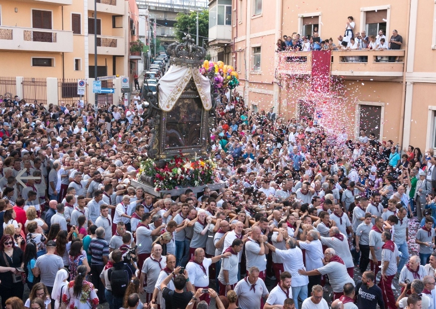 Storicamente, la festa affonda le sue radici nel XVII secolo, quando la città si impegnò ufficialmente a onorare ogni anno la Vergine con un cero votivo; la proclamazione a Patrona di Reggio Calabria fu confermata dalla Congregazione dei Riti⁷. Il quadro venerato, opera di Niccolò Andrea Capriolo (1547), raffigura la Vergine con il Bambino, affiancata da santi e circondata da ex voto che testimoniano secoli di devozione popolare⁸.