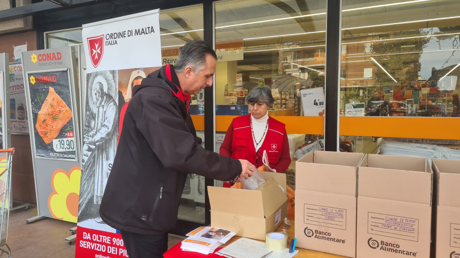 Un’ondata di generosità ha caratterizzato la 29ª Giornata Nazionale della Colletta Alimentare, svoltasi sabato 15 novembre presso il Conad “Le Terme” di Civitavecchia. Dalle 8:00 alle 19:00, un gruppo instancabile di Cavalieri, Donati e volontari dell’Ordine di Malta – Delegazione Viterbo-Rieti, coordinati dal dott. Fabio Uzzo, ha lavorato senza sosta. Raccolti alimenti destinati alle persone più fragili del territorio, accogliendo la clientela e sensibilizzando i cittadini con spirito di servizio e grande impegno.